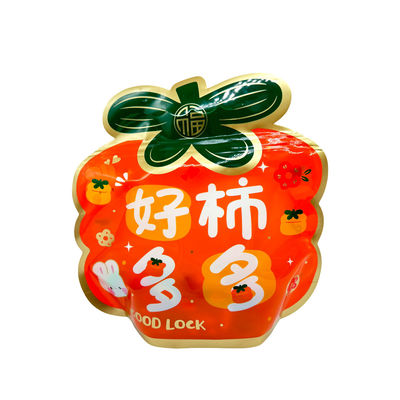 Perfekt für die Verpackung einer Vielzahl von Lebensmitteln wie Snacks, Trockenfrüchte, Nüsse oder Getreide, diese kundenspezifischen Persimmon-förmigen Beutel kombinieren ein auffälliges Design mit umweltfreundlichen Materialien,bieten eine Verpackungslösung, die sowohl stilvoll als auch nachhaltig ist.